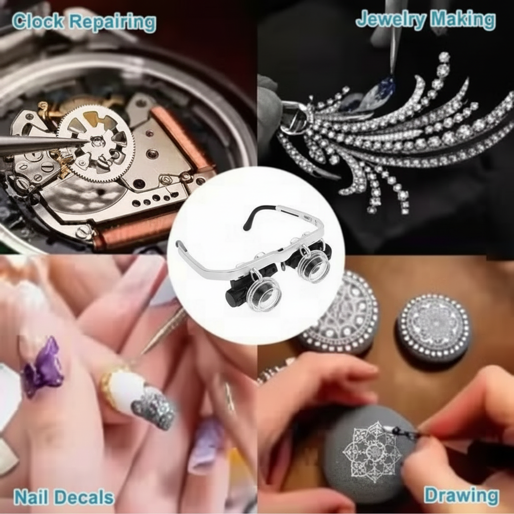 Les Lunettes Loupe LED 8X TDJ Kivora™ sont idéales pour : réparer les bijoux (bagues, chaînes, montres), les téléphones et appareils électroniques, faire de la couture, du modélisme, du bricolage ou tout travail de précision à la maison.